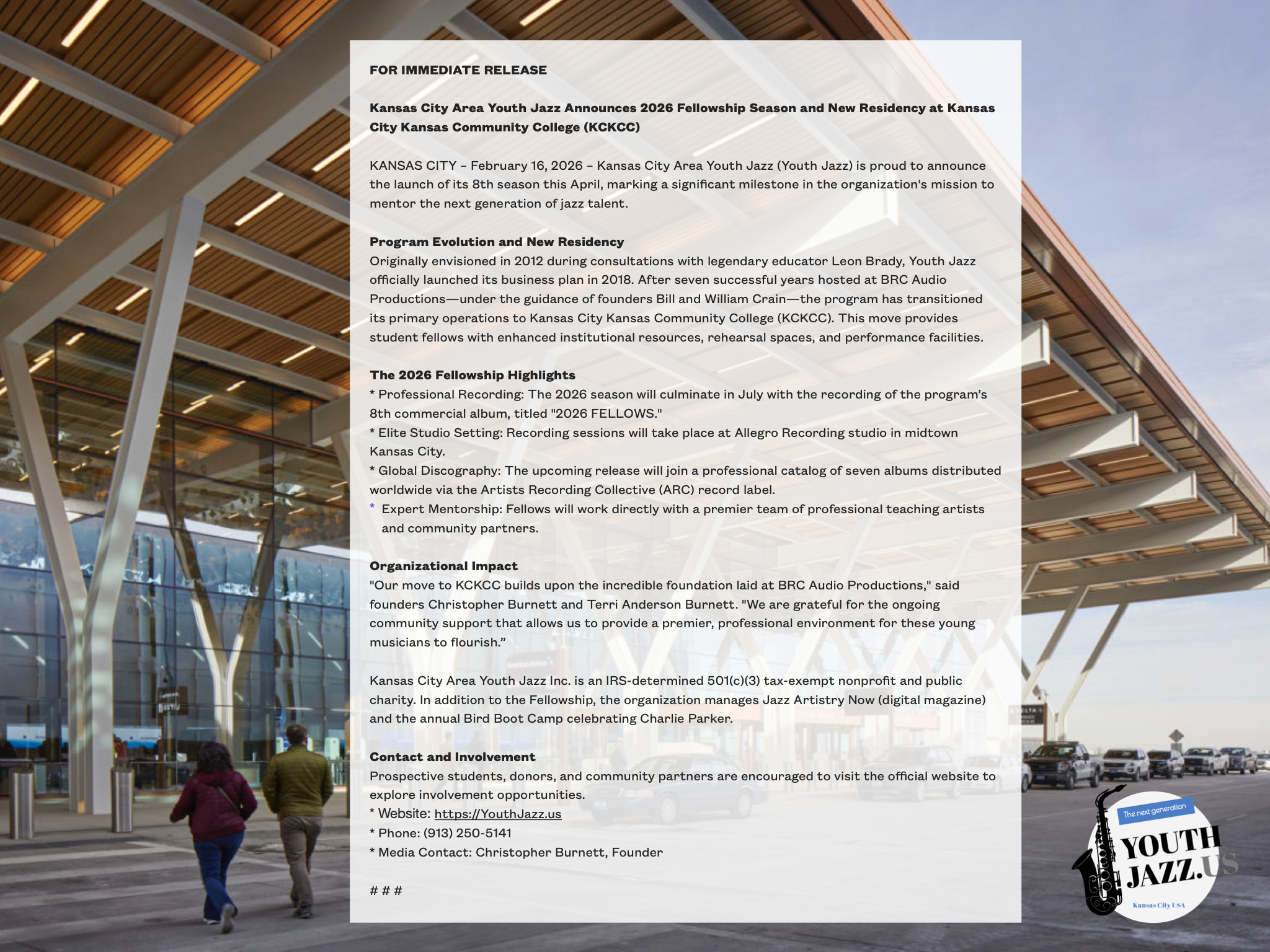 At Kansas City Area Youth Jazz, the fellowship program is meticulously designed to mirror a professional music industry experience.