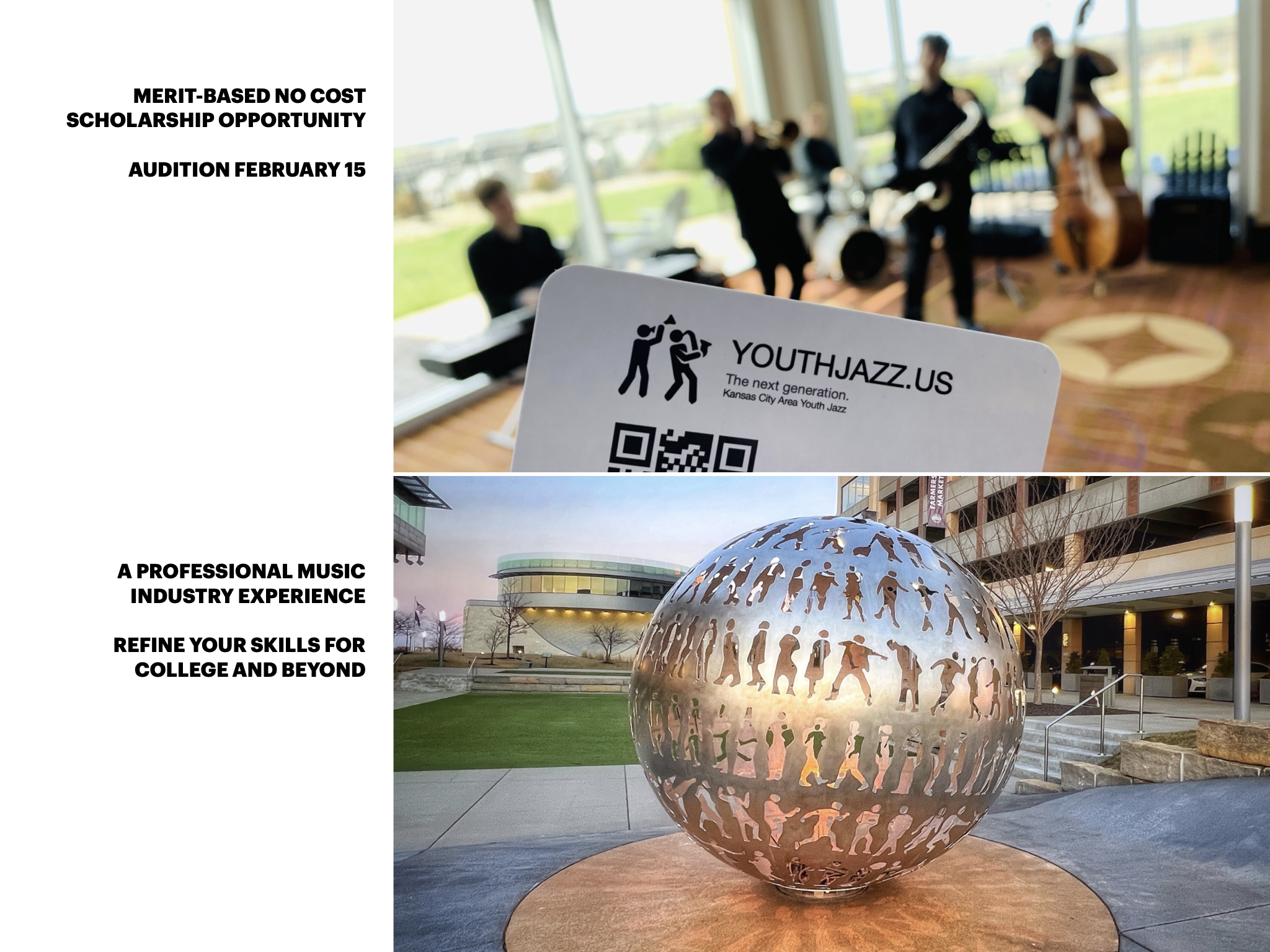 Youth Jazz Fellows typically perform Community Concerts during June or July and also perform paid performances in the greater KC area community.